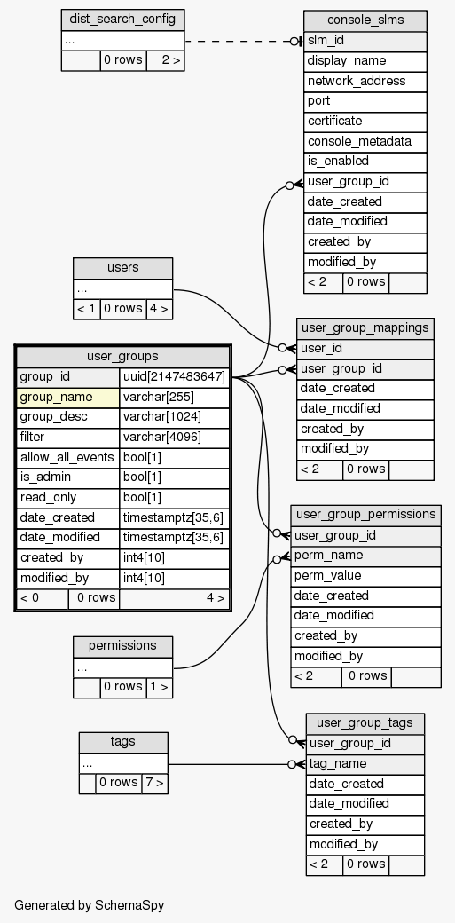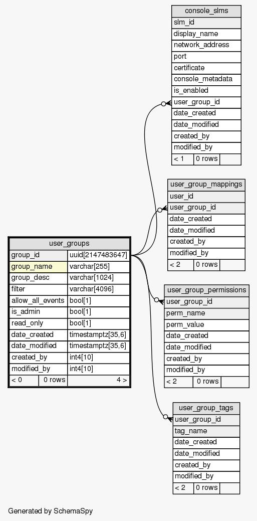 | Table SIEM.public.user_groups Sentinel groups (aka roles).