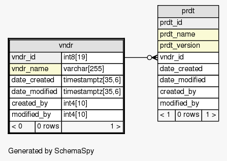 | vndr_id | Primary key | Asc | vndr_pk |