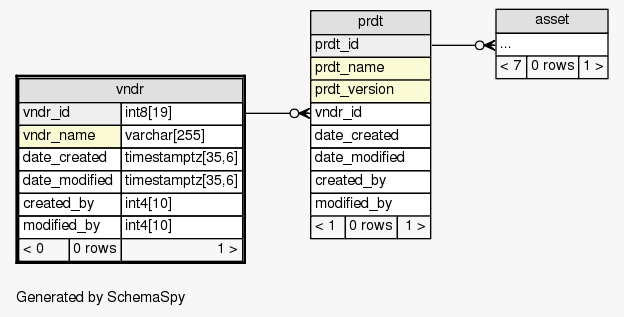 | Table SIEM.public.vndr Asset product vendor information