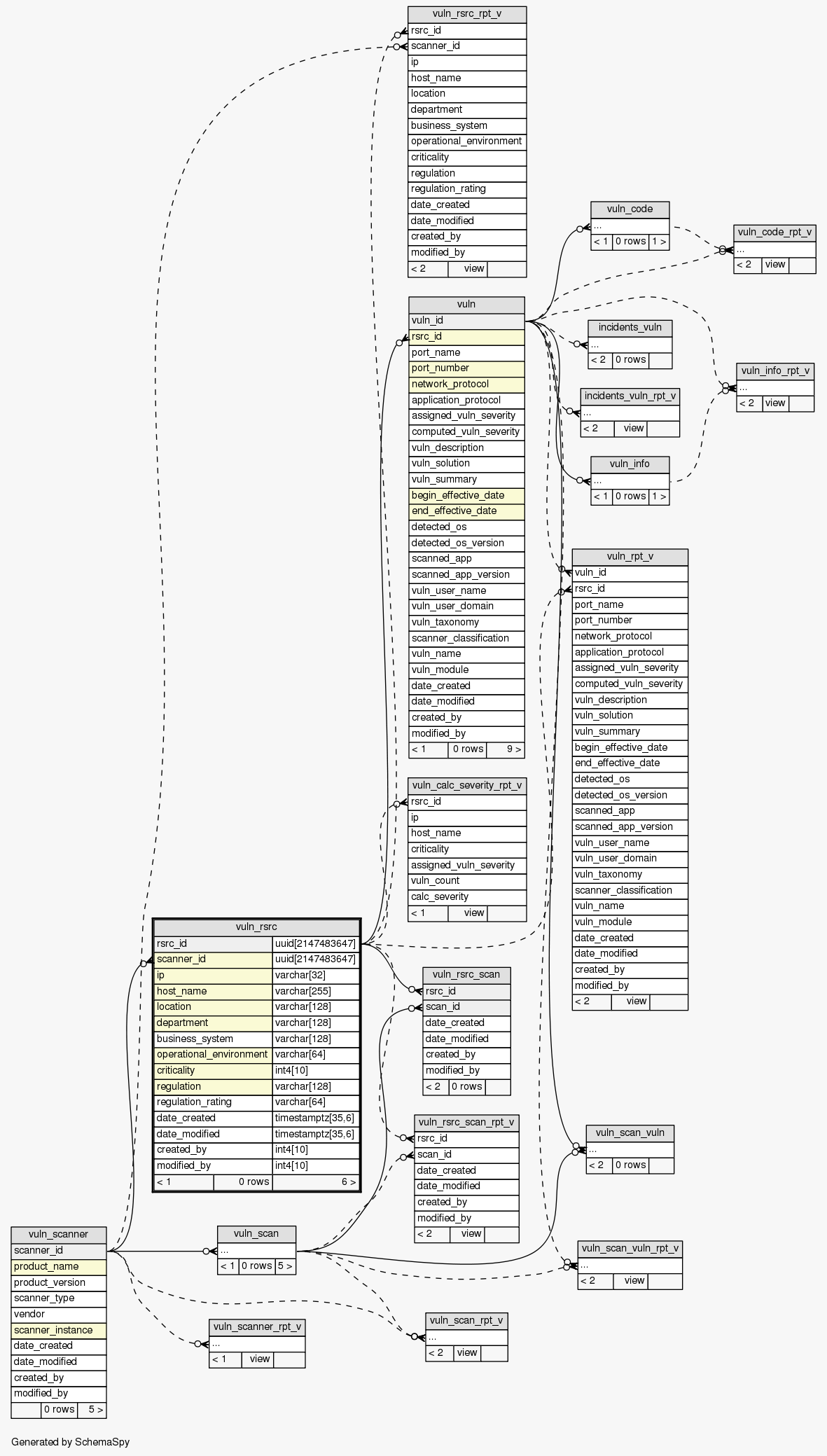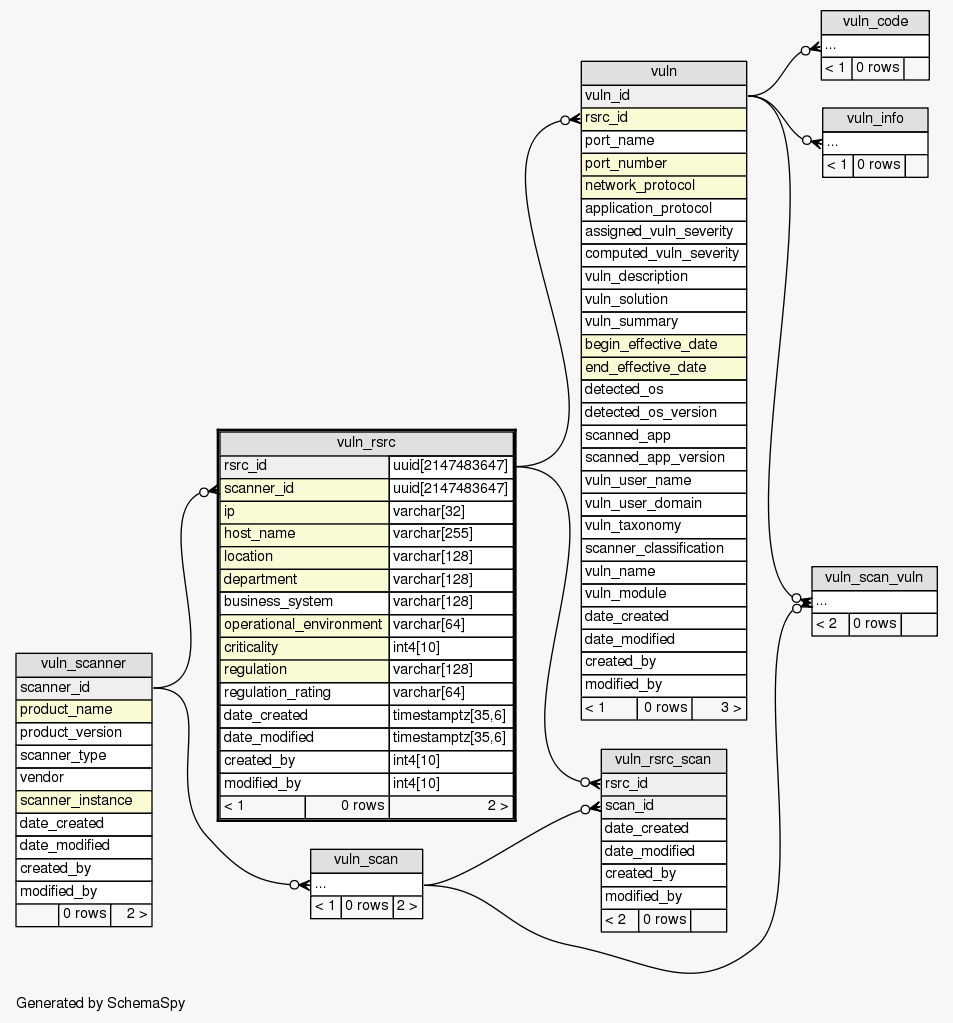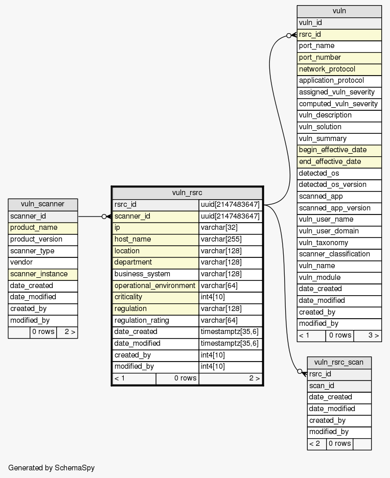 | Table SIEM.public.vuln_rsrc Contains each resource (e.g., a host) scanned by a particular scanner