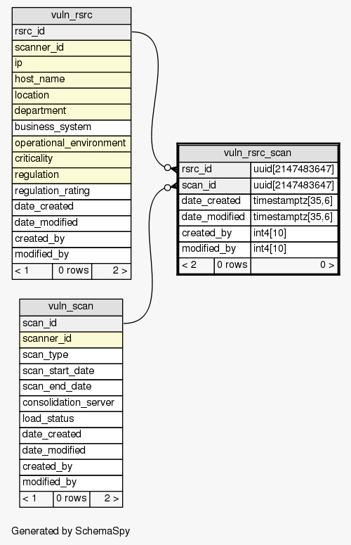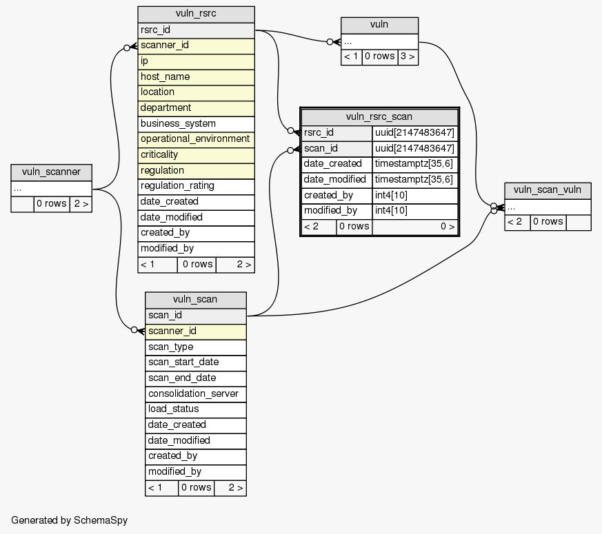 | Table SIEM.public.vuln_rsrc_scan Associates which resources were scanned by a particular scanning operation of a scanner.