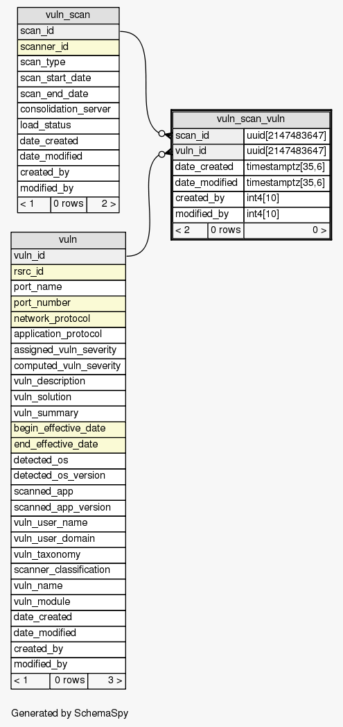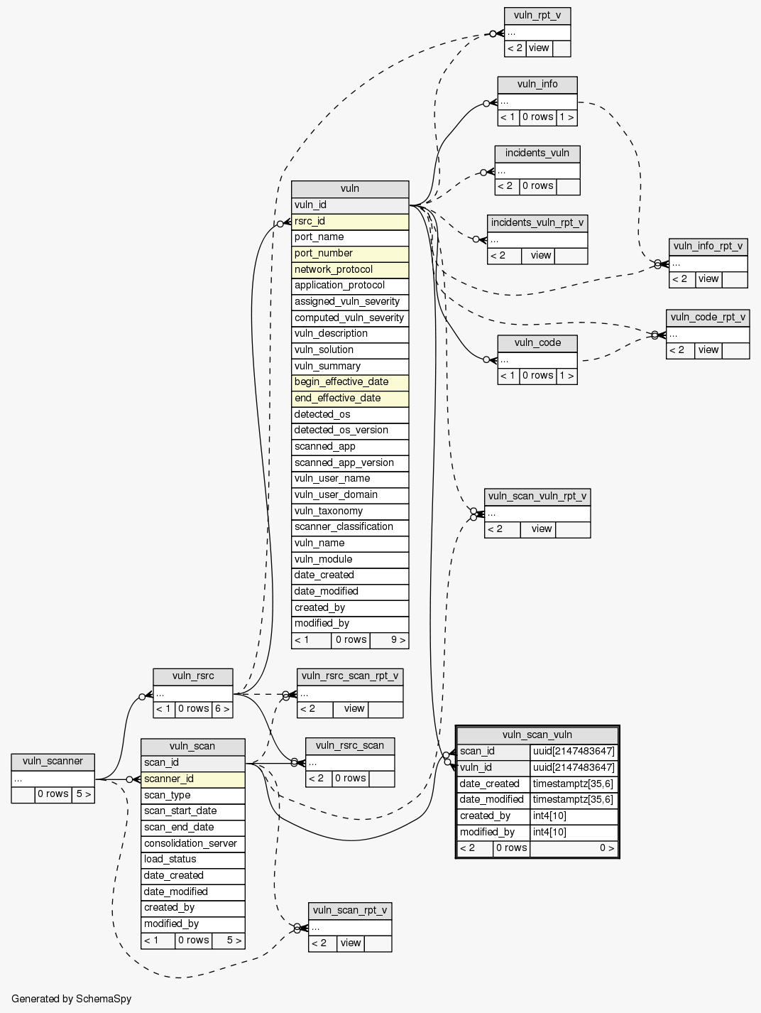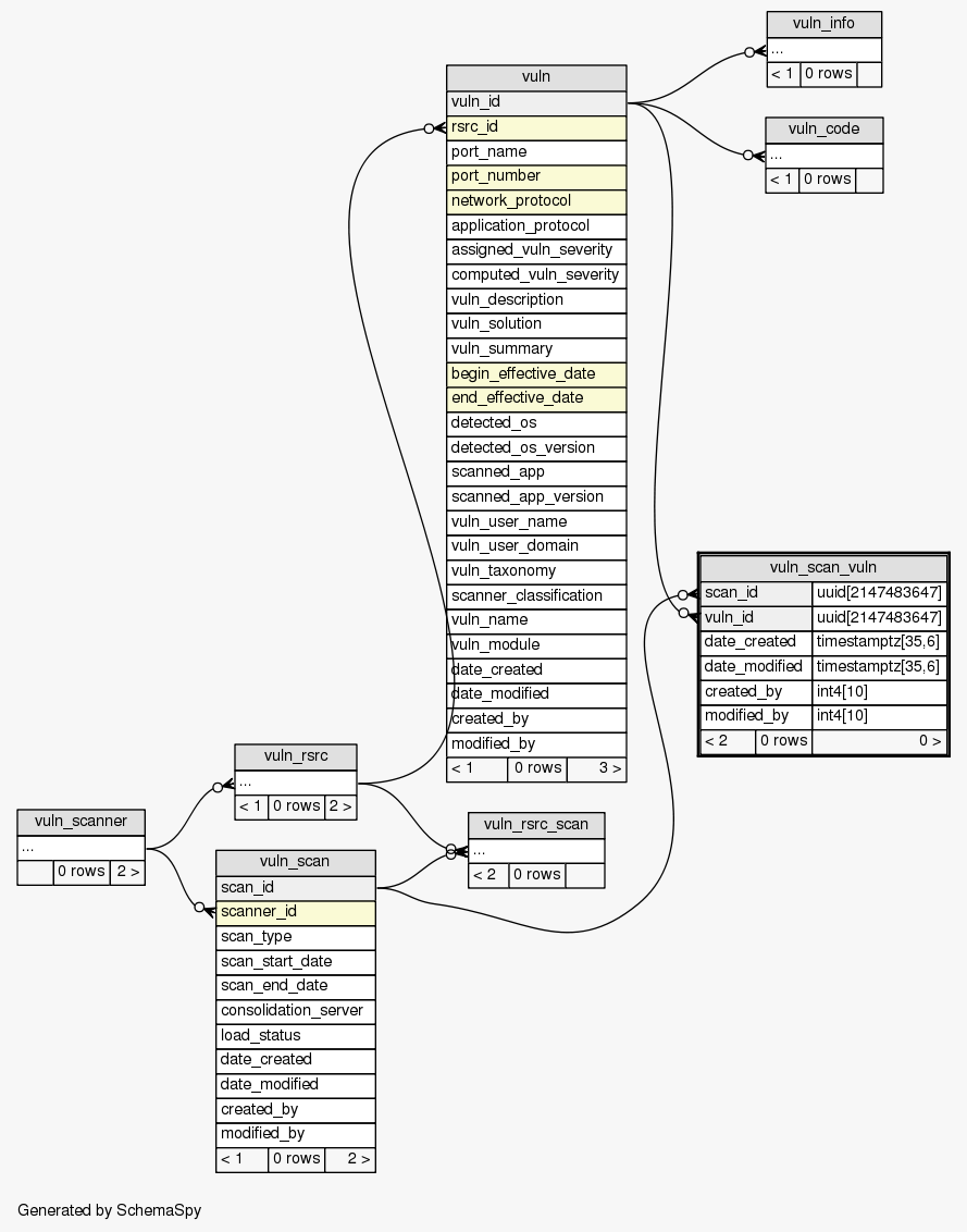 | Table SIEM.public.vuln_scan_vuln Associates which vulnerabilities were found during a particular scan operation.
