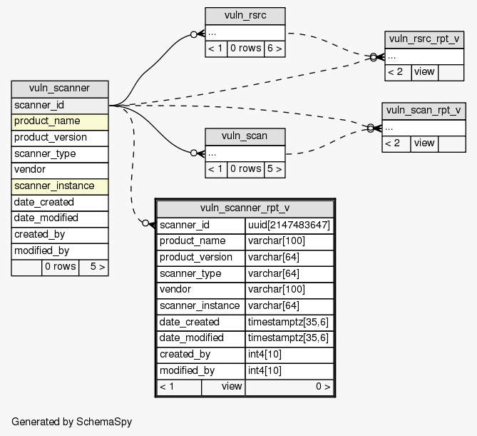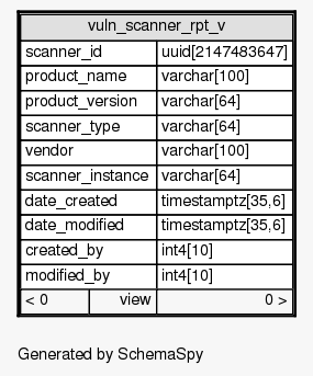 | View SIEM.public.vuln_scanner_rpt_v The list of vulnerability scanners whose data was uploaded into the system.