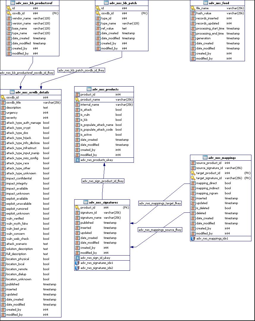 View references VULN_CODE table that stores industry assigned vulnerability codes such as Mitre’s CVEs and CANs.