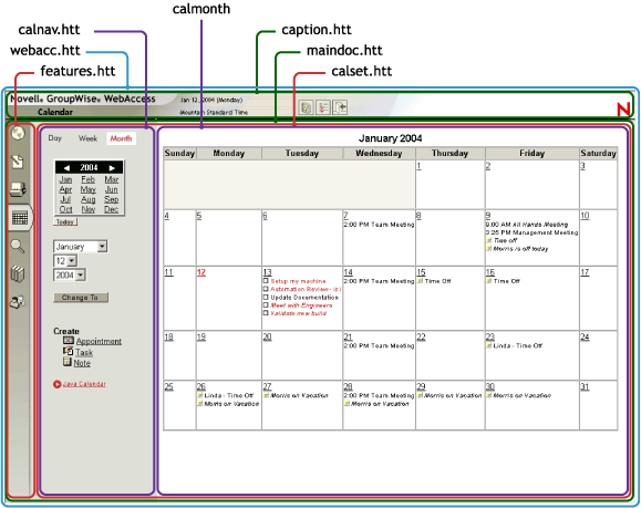 Figure 3-13 Monthly Calendar, HTML Mode