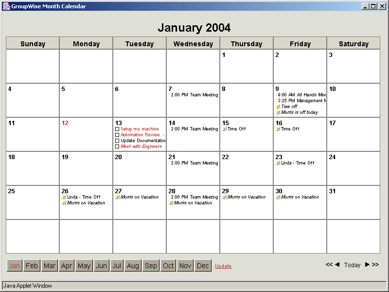 Figure 3-12 Monthly Calendar, Java-Enhanced Mode