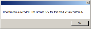 If a license key is already registered on the server, the information on the page states This product is already registered