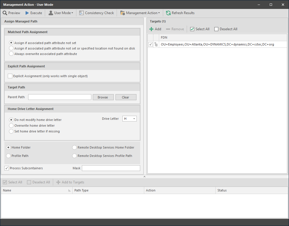 File Dynamics allows you to populate any missing home folder attributes or correct attributes that are not configured correctly. You do this by selecting a path and looking for a match on each user’s ID. You also have the option to overwrite an existing attribute based on a match found.