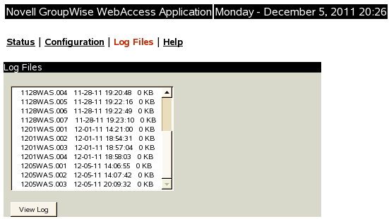 By default, WebAccess Application log files (mmddwas.nnn) are located in the GroupWise Web application working directory.