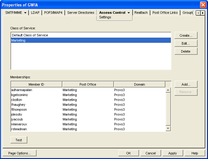 If you created multiple classes of service, you might not know exactly which settings are being applied to a specific object (domain, post office, distribution list, or user) and which class of service the setting is coming from. To discover an object’s settings, you can test the object’s access.