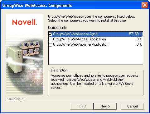 Make sure that no other GroupWise agents are running on the server where you want to install the WebAccess Agent.