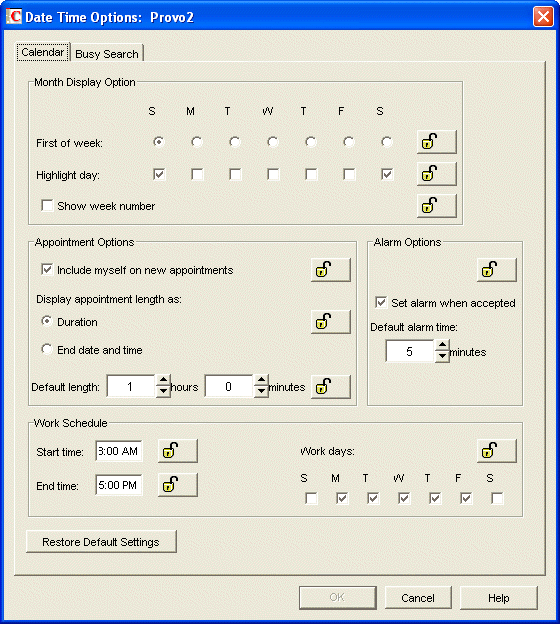 Figure 69-25 Date and Time Options Dialog Box with the Busy Search Tab Open