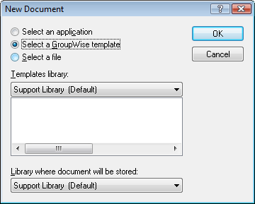 When you create a new document using > > , GroupWise prompts you to select a template for the document. You can use an application’s template, a GroupWise template, or a file on disk as the foundation for your new document.