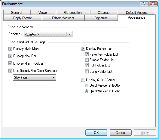 Select the appearance settings you want for GroupWise.