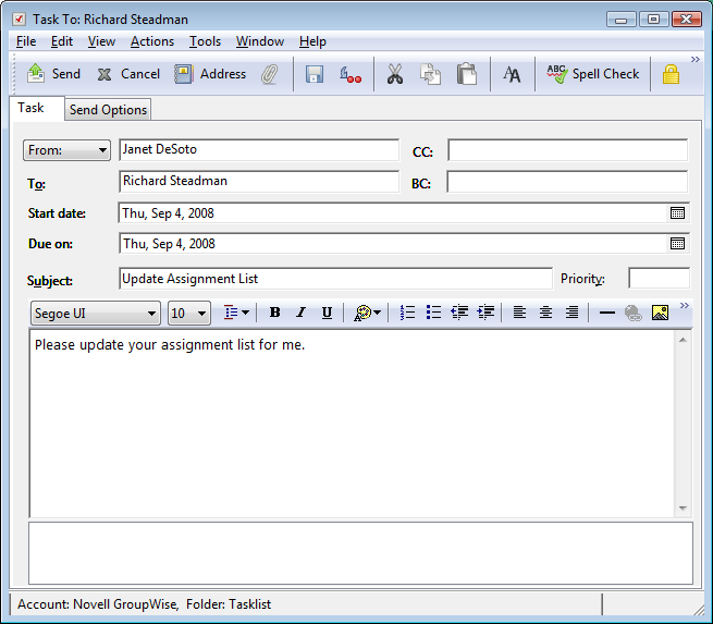 (Optional) Click the tab to specify other options, such as making this task a high priority, requesting a reply from recipients, and more.