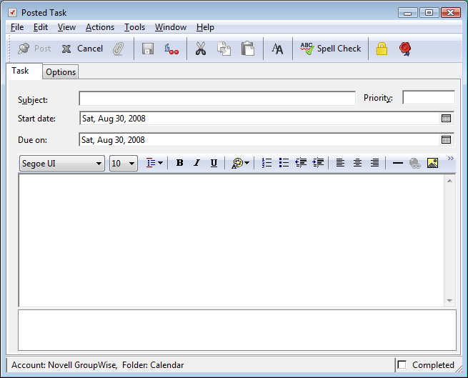 When you mark a task as complete, GroupWise sends notification to the originator of the task if he or she selected return notification in Send Options. A Completed status, including the date and time the task was marked as complete, is placed in the originator’s Properties window.