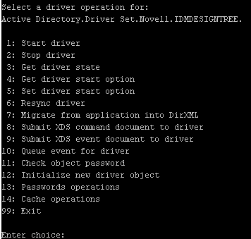 The interactive mode provides a text interface to control and use the DirXML Command Line utility.