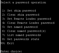 The dxcmd utility allows you to set the Application password and the Remote Loader password. You cannot set the Driver Object password with this utility. It shows if the password has been set or not. |