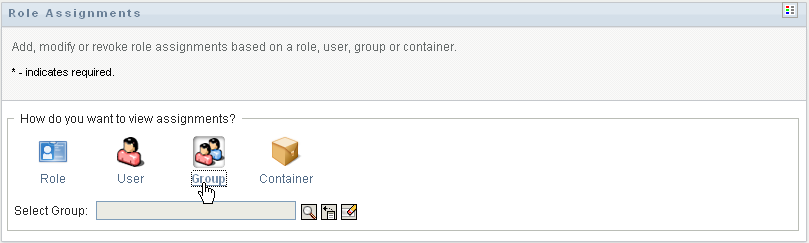 Select the group to which you want to assign one or more roles.