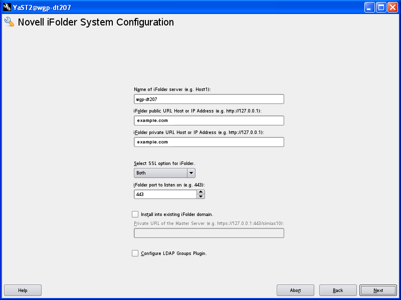 HINT:If the iFolder configuration failed at any stage, refer to the /var/log/YaST2/y2log file to find the details on the failure that help you in analyzing and troubleshooting the issues.