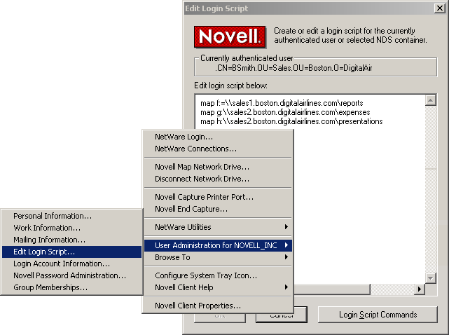 Figure 1-2 Editing a Login Script from the N Menu