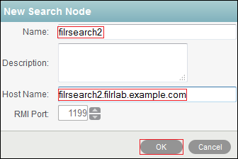 Type an arbitrary name for the second search node, specify its DNS host name, then click OK.