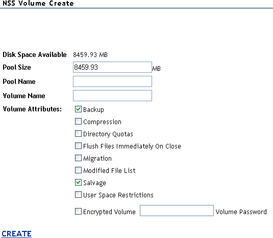 For NSS partitions, you must create a pool when you create a partition. By clicking the link, you can create a NSS partition, pool, and volume in the same action.