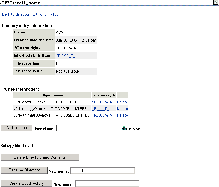 Add a Trustee: Click , type the fully distinguished name (username.context.tree.domain) of the user you want to add, then click .