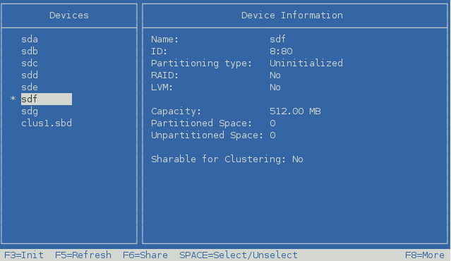 Visually verify that the device was initialized and the specified partition type is displayed.