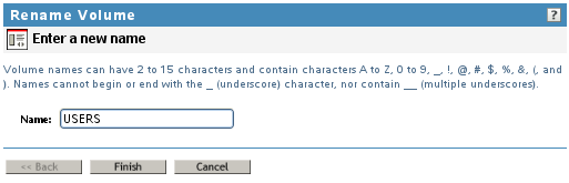 On the Volumes page, select the mounted NSS volume that you want to rename.
