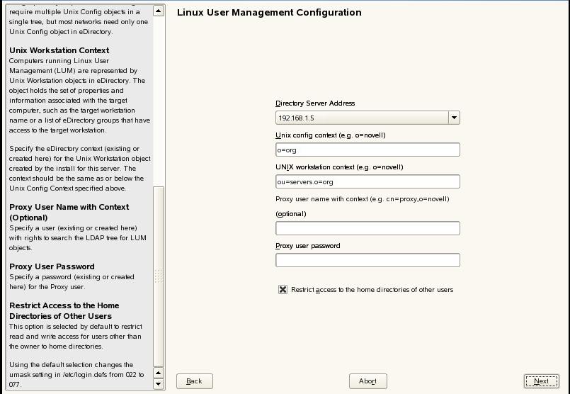 Continue with Section 3.2.3, Configuring LUM and Novell Samba.