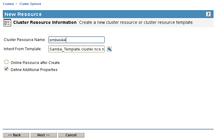 Click Next, then continue with Section 5.5.5, Configuring Samba Load, Unload, and Monitor Scripts.