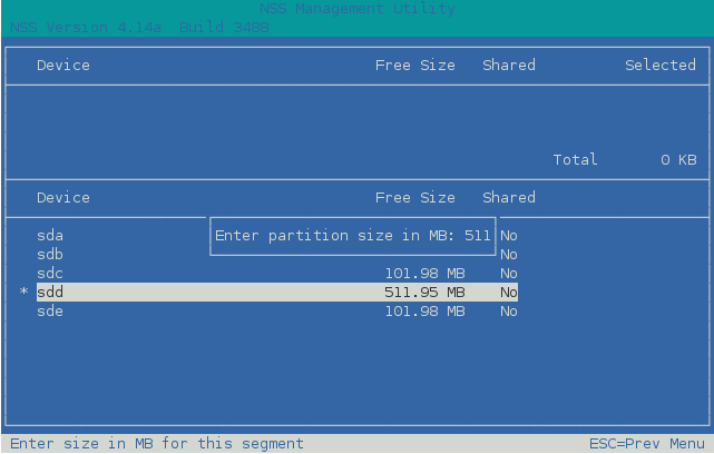 Specify the maximum amount of space in MB to use from the selected device, then press Enter. You can use part or all of the available space on the selected device.