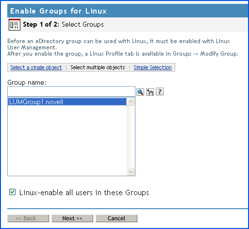 Before an eDirectory user can be used with Linux, it must be enabled with Linux User Management.