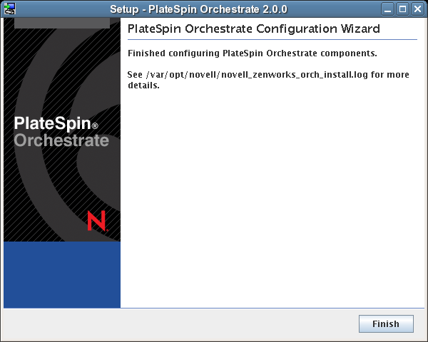 IMPORTANT:When the installation and configuration are complete, you need to register the resources to be managed by the PlateSpin Orchestrate system. Please refer to Section 3.0, First Use of Basic PlateSpin Orchestrate Components for detailed information about getting resources to manage in the PlateSpin Orchestrate system.
