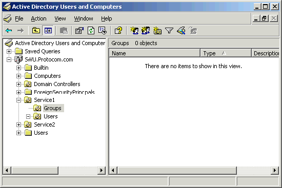 On a workstation or server open Active Directory User and Computers, and browse to the OU where you would like to create the group that will hold the Help Desk users who will work with SecureLogin for the selected container and its children.