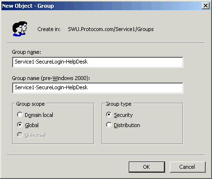 Give the group a descriptive name, such as Service1-SecureLogin-Help Desk.