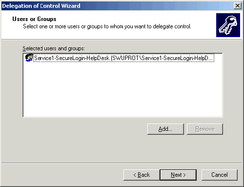 You are now finished with the delegate control wizard for the Service1-SecureLogin-Admins group. Click .
