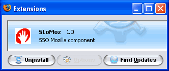 NOTE:If you wish to continue using Mozilla Firefox 1.0.x or earlier, then the SLoMoz.xpi installed with Novell SecureLogin must be uninstalled and the slomoz.xpi of the Novell SecureLogin installer package must be reinstalled.