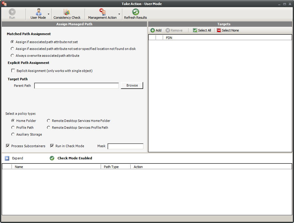 The consistency check report’s column indicates the path (also referred to as “attributes”) of the user’s assigned home folder. If no path is indicated, it is because the home folder attribute is not set in Active Directory.