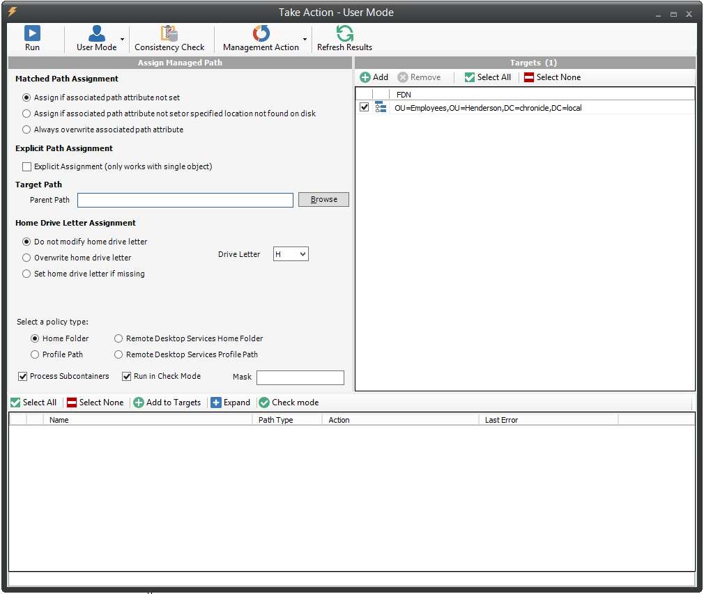 In the Matched Path Assignment portion of the window, make sure the Assign if Home Directory attribute not set option is selected.