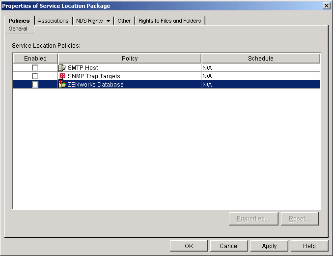 In ConsoleOne, right-click the Service Location Package you want to use > click Properties.