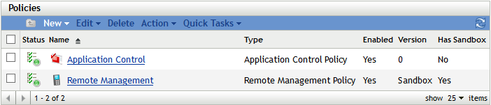 NOTE:If the policy is not showing up on a test device or for a test user, make sure that the Sandbox version is the active version. Only Sandbox policies can be deployed to test devices and users.