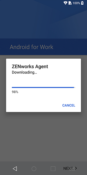 Click Next in the Android for Work page to proceed with the ZENworks App installation.