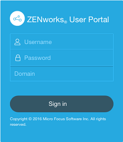 The login screen for the ZENworks User Portal is displayed. You use the ZENworks User Portal to enroll the device.