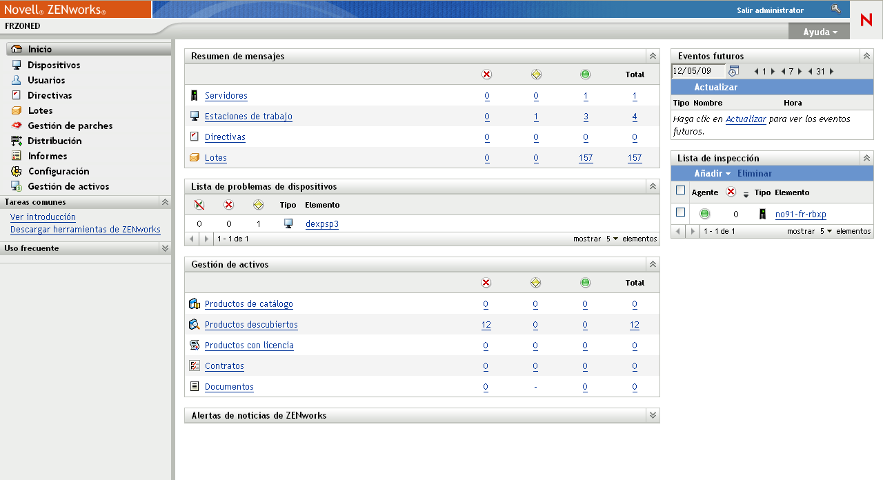1. En el Centro de control de ZENworks, haga clic en la pestaña Inicio.