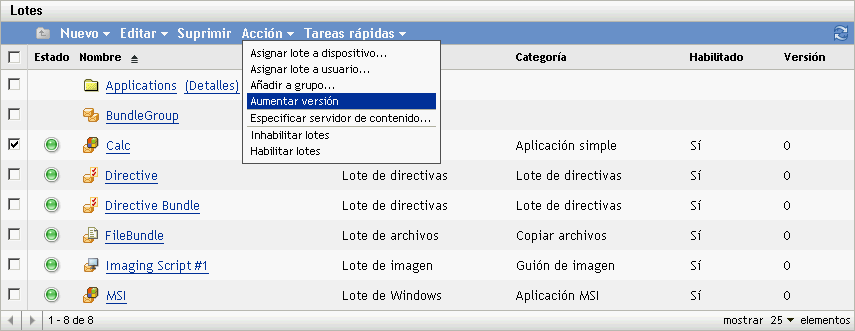 Al aumentar el número de versión de un lote, el lote se redistribuye a los dispositivos gestionados y se vuelve a copiar en los servidores de contenido.