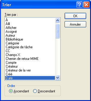 Cliquez sur la propriété de l'élément devant servir de critère de tri dans la zone de liste.