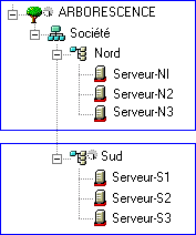 Supposez que votre réseau couvre deux sites, Nord et Sud, connectés entre eux par une liaison WAN. Chacun des sites comporte trois serveurs. Reportez-vous à Figure 17.