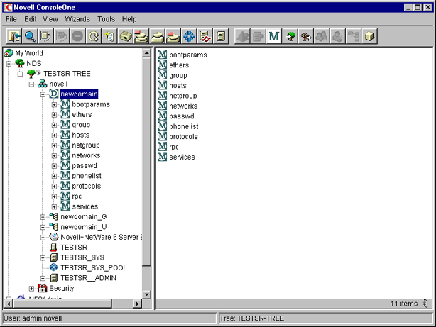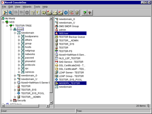NOTE: You can also start and stop the NIS Services by using the NIS Server menu. Make sure you refresh ConsoleOne after you change the status of NIS using the menu.